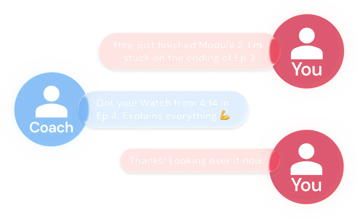 You have 1:1 access to your Ecom Growth Mentor, weekly live Q&As, our private mastermind Slack, and swipe-file libraries for ads, emails, and funnels.